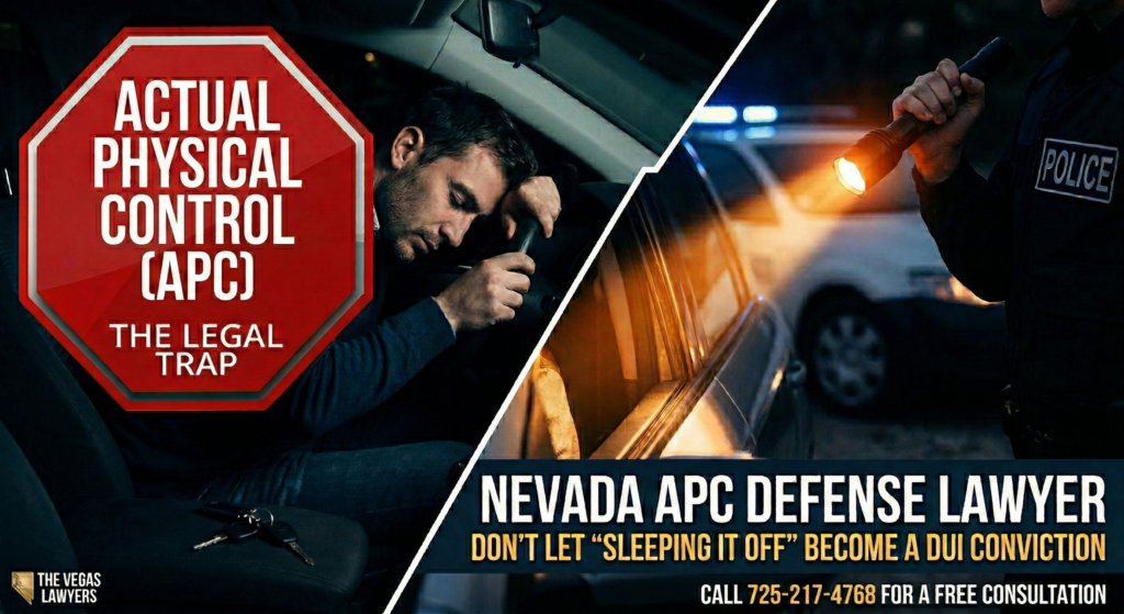 If you have been arrested for Actual Physical Control in Las Vegas, Henderson, or North Las Vegas, time is of the essence. You only have a limited window to request a DMV hearing to save your license.Call The Vegas Lawyers at 725-217-4768 or visit our office for a confidential case evaluation. We will listen to your story, explain your options, and fight to get your life back on track.